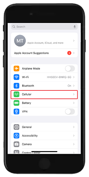 Select “Cellular” on the new iPhone