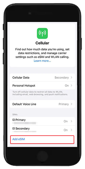 Tap “Add eSIM”