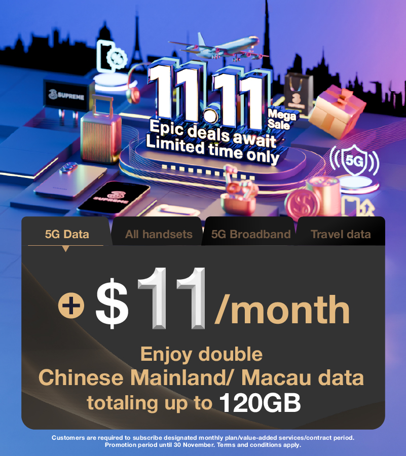 From now till 30 Nov 2025, subscribe to a designated 5G Monthly Plan, add $11 to enjoy