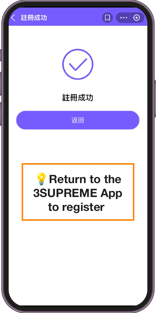 Registration successful. Return to the 3SUPREME App to register and redeem the "Bus Pass."