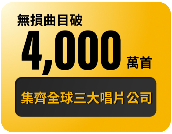 提供超過4,000萬首16bit CD無損歌曲,及超過300萬首24bit Hi-Res無損歌曲